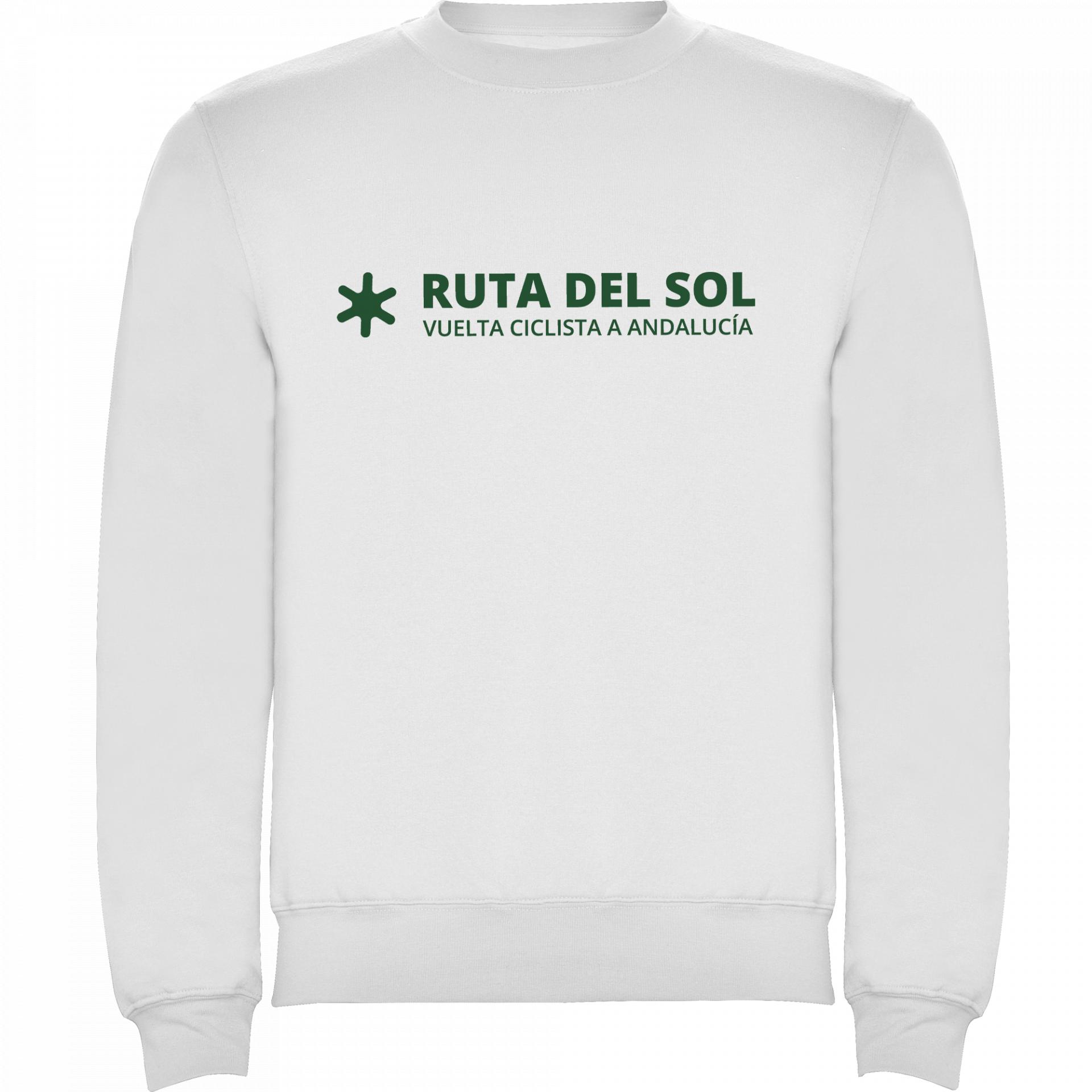 Esta sudadera blanca luce la estampación oficial de la Ruta del Sol – Vuelta Ciclista a Andalucía, un diseño limpio y directo que conecta con la historia y el prestigio de una de las grandes pruebas del calendario ciclista.