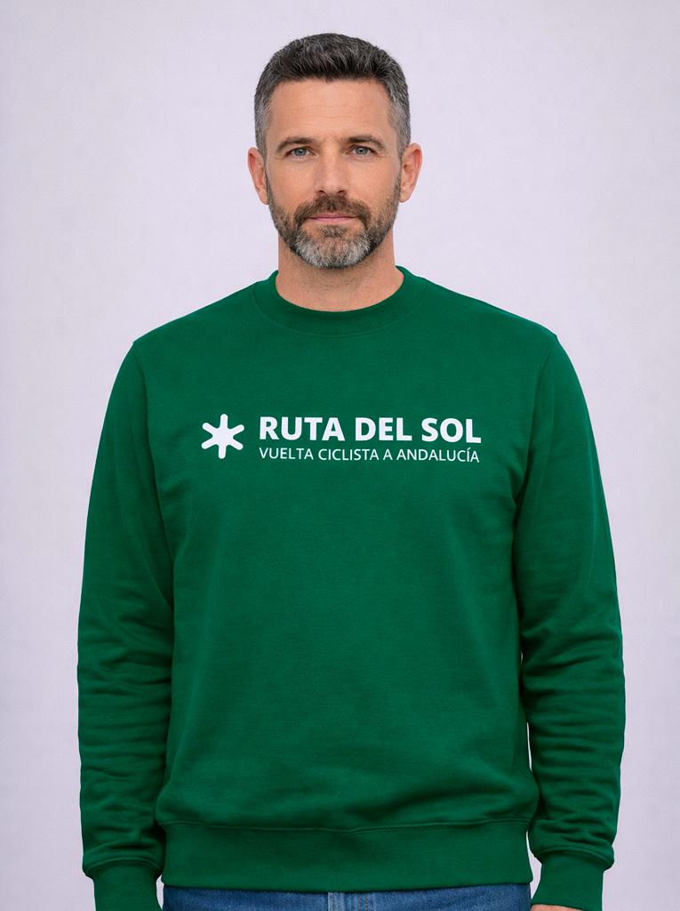 Esta sudadera verde luce la estampación oficial de la Ruta del Sol – Vuelta Ciclista a Andalucía, un diseño limpio y directo que conecta con la historia y el prestigio de una de las grandes pruebas del calendario ciclista.